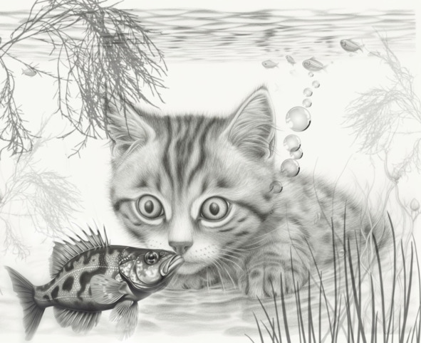 – Дяденька, Царь Подонный! – взмолился котёнок. – Если нет меня в книгах морских и озёрных, в сетях ловчих, в обители утопленников, так может, пособите наверх выбраться? В угодьях ваших холодно и мокро…