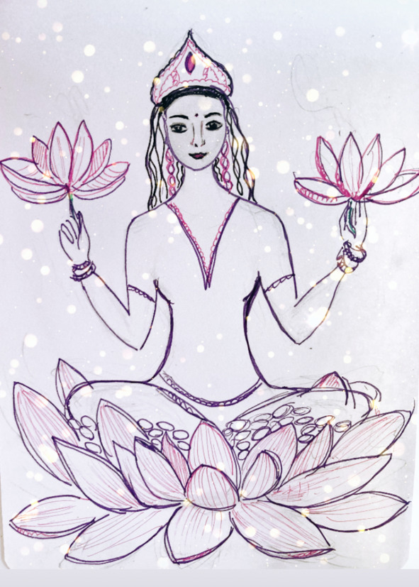 На озвученную идею этого проекта набежало большое количество индусов. Наташа Киселева хочет, чтобы я ее в виде Лакшми нарисовала, сидящей на лотосе. Я сидела в кафе, когда мы это обсуждали. Оглядевшись, поняла, что вокруг меня, и за моим столом сидят индусы. Кафе наполнено ими, нет ни одного свободного стола. Похоже, работники кафе такого вообще никогда не видели. Закончив разговор, поняла, что индусы, как материализовались, так и исчезли. Удивительно. Восприняла, это, как знак того, что надо писать «Лакшми Киселеву на лотосе», индусы благословили.