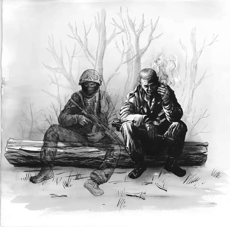 Хоть в ПВД[18] можно немного расслабиться. Вот так выйти с другом из дому, сесть на лавку и спокойно закурить. Почти как в мирной жизни. Вечерняя тишина непривычно давит, а так ничего. Нормально. А фронт относительно далеко, километрах в пятидесяти. Вчера ещё были там. Друг, как обычно, спас моей группе жизнь. У Паруса всегда было звериное чутьё на опасность. Второй контракт уже с ним добиваем. Я ему верю и всегда прислушиваюсь.