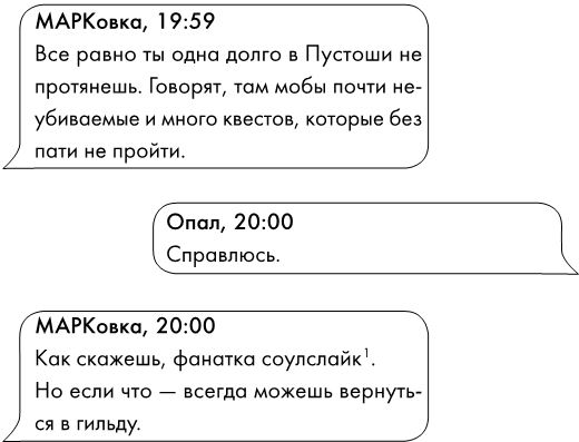 Там, куда я направляюсь, мне потребуется все самое лучшее, что успела нажить в виртуальном мире. Новые локации куда выше по уровню и пока мне незнакомы. Я оттягивала время и не отправлялась в путешествие одна, потому что тешила надежду ступить в новые земли вместе с напарниками из гильдии. Они бы подняли уровень до порогового, необходимого для входа, а я – раскачалась бы тут почти до максимума, чтобы ни один новый моб или босс не представлял для нас серьезной угрозы.