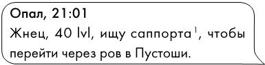 В потоке сообщений мое замечают не сразу. Спам, попытки найти пати или что-то продать, обычная болтовня – моя просьба о помощи теряется в бегущей ленте текста. Мне приходится отправить ее несколько раз, прежде чем какой-то рандом подсказывает: «На юге есть мост».
