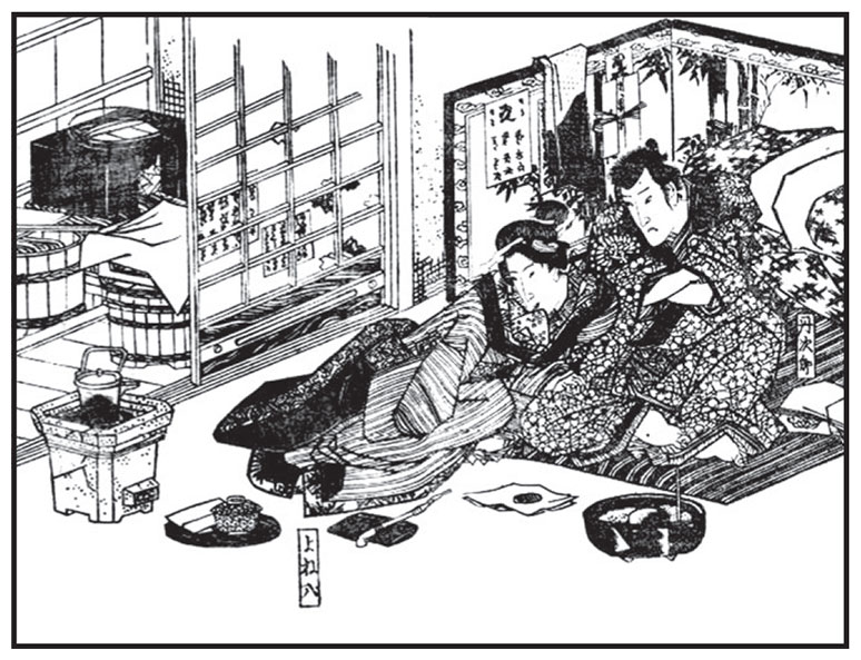 Три или четыре года подряд были для меня несчастливыми, кругом подстерегал меня Золотой Бес[8], и я не мог сдвинуться с места. Но недаром говорится: стоит лишь тонкому ледку подтаять, как вешние воды (а имя им «сюнсуй», как и мне) заполняют все впадины. Как раз в такое время и расцветает улыбкой старший брат всех цветов – цветок сливы. Старший брат моей сливы, господин издатель Бунъэйдо[9], оказал ей покровительство, и вкупе с обаянием кисти художника из Нэгиси[10] это принесет книге великий успех. Озаренные яркими лучами солнца ветви сливы я подношу духам Лунного знака[11], покровителям удачных начинаний, а начинал я писать свою книгу в счастливый день зимнего солнцеворота.