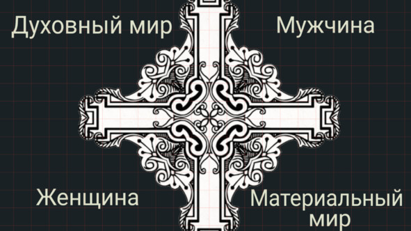 Энергетическая противоположность четырёх граней, а именно духовного и материального мира, а также мужского и женского начала, и запускает маховик жизни.