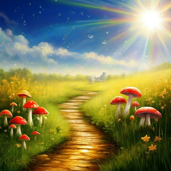 Льётся дождик золотойНа тропинки и траву.Не простой дождь, а грибной,Даря сказку наяву.Солнце отдаёт всем свет,Посылает лучик свой.Теплом этим обогретКолокольчик голубой.Из земли растут грибы,Шляпки влажные опят.У протоптанной тропы,Словно выстроились в ряд.В небе радуга взошла,Подарила семь лучей,Краски лета принесла,Семь соединив частей.Льётся дождик золотой,Озаряя всё вокруг.Жизни радости живой,Создавая счастья круг.