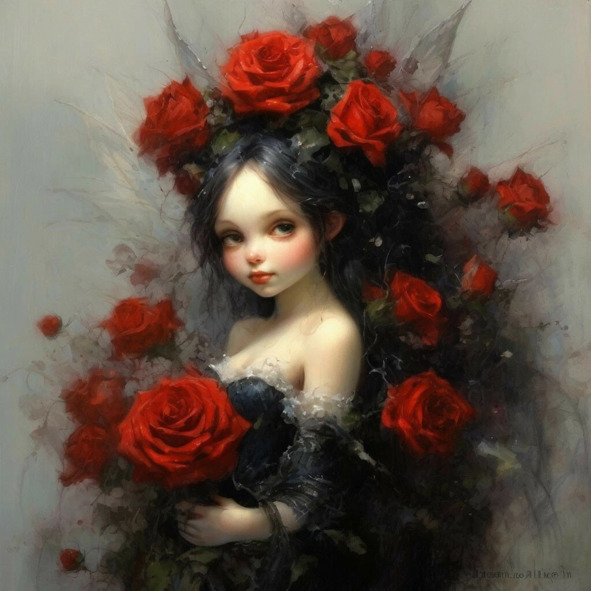 На пышном кусте красных розЖила крошка-фея из грёз.А нежный шифон лепестков,Как кровь был ал и багров.Прекрасные розы цветы,Шипы их тонки и остры.И вряд ли кто будет готов,Рвать розы с колючих кустов.Но фее шипы не страшны,Они для защиты нужны,У роз есть много врагов:Улиток, жаб, слизняков.А розу попробуй, достань,И палец о шип не порань.Она ведь собой хороша,Поёт от аромата душа.Вот сорванный держишь цветок,Но мир так бывает жесток!Волшебница роз хмурит брови,А на кусте капельки крови.