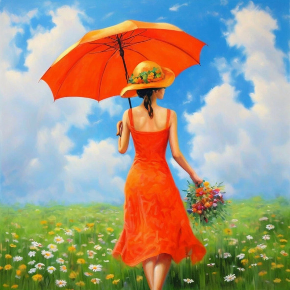 Весна уходит, лето повстречав,Оно спешит, торопится вприпрыжку,Идёт уверенно, все тучи обогнав,Держа цветастый зонт подмышкой.В оранжевой панаме и в цветахНа ярко- красном тонком сарафане.Букет ромашек держит в двух руках,Так подготовилось ко встрече с нами.И ароматом ягод веет, разных трав,Вдруг скошенной травой запахло,То лето приближается стремглав,Гостит в нашем краю с размахом.Щедры дары лесов, полей, лугов,Всё созревает летнею порою.И слышен звук размашистых шагов,То лето движется нехоженой тропою.Оно ведёт с собой багряную зарю,Закат лиловый, дивные рассветы.Потом подарит гостю- сентябрюИз полевых цветов душистые букеты.