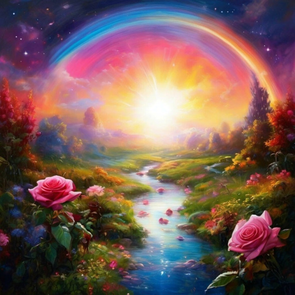 А где-то есть волшебная страна,Страна мечты и розовых рассветов.Там звёздной ночью бродит тишина,А днём всё озаряет солнце светом.В саду цветут кусты бордовых роз,Пьянящие соцветия благоухают.И ароматом счастье расплылось,Роса алмазами на лепестках сверкает.В стране волшебной радуга – дуга,Раскинулась над лугом, речкой.Все семь цветов своих зажгла,А по лесу гуляет Вечность.Там звёзды яркие, как будто фонари, Зажглись в вечернем небосклоне.На розы повнимательнее посмотри,Мечта там сладко спит в бутоне.Изменчивость, видений красотаВстречаются в стране волшебной,Ведь там живёт заветная мечта,В стране иллюзий необыкновенной.