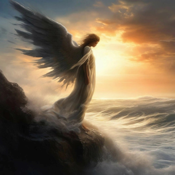 В лучах заходящего солнцаБьётся о скалы прибой.Вечер тихонько крадётся,Ночь ведя за собой.Ангел у края обрыва,И взор устремлён его в даль.А сильные ветра порывыТоску нагоняют, печаль.Волны хлещут о скалы.А Ангел крылья сложил.Ему не страшны ветра шквалы,Он много штормов пережил.Он знает, что буря не вечна,За штормом приходит покой.Ведь наша жизнь быстротечна,В ней непогода бывает порой.Ненастье сменяется штилем,Счастье приходит потом.И Ангел летит легкокрылый,Он послан Небесным Отцом.