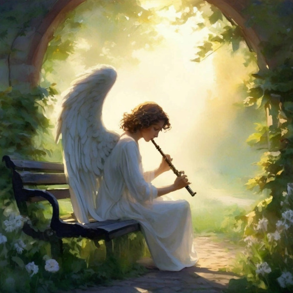 По аллеям старого паркаАнгел бродил в ранний час.Заря занималась ярко,А бледный месяц погас.Ангел присел на скамейку,Крылья устало сложил.Он заиграл на флейте,И старый парк вдруг ожил.Ангелу внемлет природа,Птицы умолкли тот час.Солнца лучей позолотаНа Ангела с неба лилась.В лучах восходящего солнцаПрекрасен Ангела лик.Мелодия флейты несётся,Даруя чарующий миг.