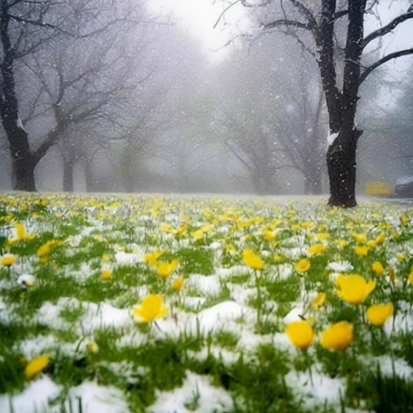 А над землёю снег кружился.То был весенний майский снег.Он на траву, цветы ложился,Как будто время изменило бег.Как будто вспять бегут минуты,Мы в прошлое перенеслись.И не было весны, как будто,Зима вернулась, так смирись.Вновь светит солнце, но не греет,Колючий ветер ветви гнёт.В душе надежда не слабеет,Весна воротиться, придёт.И снова солнце засияет,Растопит снег теплом своим.Надежда, радость окрыляют,Мы верить в них не прекратим!