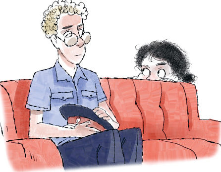 Женя заметила на диване полицейского и очень удивилась. Это был невысокий кудрявый человек лет тридцати. Он нетерпеливо постукивал по паркету носками ботинок, будто хотел поскорее уйти, и то и дело поправлял очки, которые упорно съезжали на середину носа.