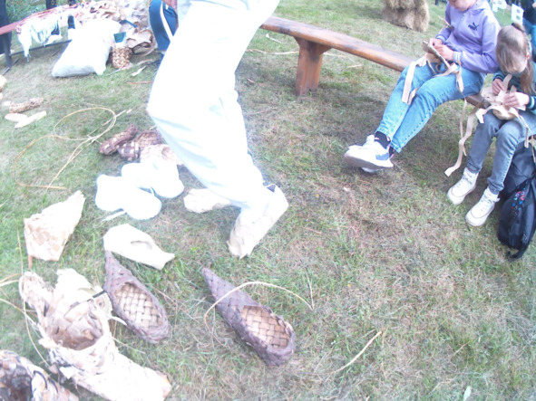 Сегодня на поляне кемпинга озера Увильды проходят соревнования по плетению лаптей. Это мероприятие организовано для взрослых и детей, желающих научиться этому древнему ремеслу.