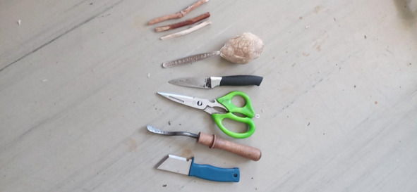 расслаиваем бересту, чтоб она была помягче по эластичнее,