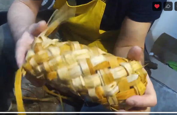 размочили бересту в горячей воде, чтобы она была пластична и продолжаем заплетать все наши, все наши кавычки по своей строке.