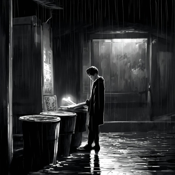 Однажды сентябрьским вечером я пошёл в среднюю школу, и на мой город обрушился сильный проливной дождь. Я долго стоял под дождём. В тот день я, как обычно, пришёл домой из школы, но мама выбросила все мои детские рисунки, все мои поделки и марки, которые я собрал, в железную мусорную корзину на террасе.