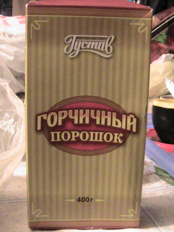 Берём пачку «горчичного порошка», весом -400 грамм. Я брал в «магнтите». Вот этот: «Густов», по 65 рублей.
