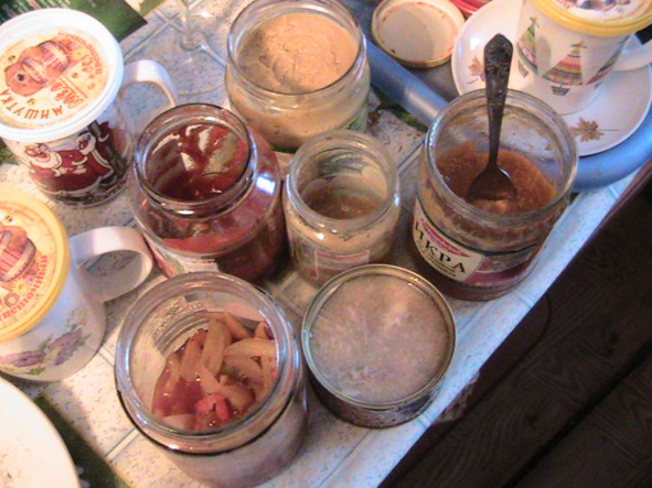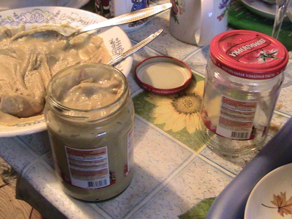 «Приготовление горчицы из 6 столовых ложек горчичного порошка». «И уже готовую – раскладываю в баночки»!