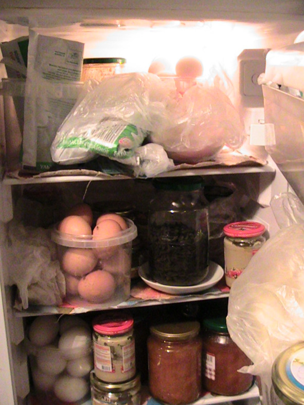 Мой холодильник и теперь —только чтобы «польза»: вот, посмотри, чтобы не шептались за спиной: мол, говорит о пустом холодильнике, а у самого – он ломиться от вкусностей, колбас, сала и т. д. Нет, я тебя и других —не собираюсь «водить за нос» и обманывать!