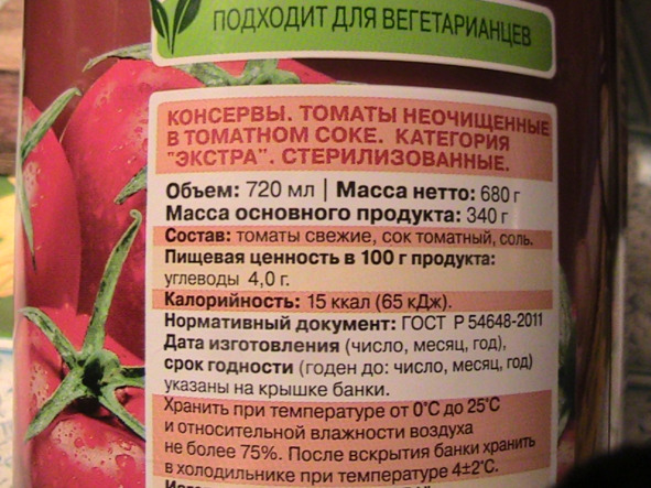 «Основной «МИНУСОВОЙ ПРОДУКТ» основной -после 18 часов: «ТОМАТЫ В СОБСТВЕННОМ СОКУ», ТОМАТЫ В ТОМАТНОМ СОКЕ»! Сразу скажу: " В СОБСТВЕННОМ СОКУ» и «В ТОМАТНОМ СОКЕ» — это РАЗНЫЕ ВЕЩИ! ПРЕДПОЧТИТЕЛЬНЕЕ БРАТЬ – «ТОМАТЫ"В СОБСТВЕННОМ СОКУ» – это когда ПОМИДОРЫ в банке УЛОЖЕНЫ И ЗАЛИТЫ ВЫЖАТЫМ СОКОМ ИЗ ТАКИХ ЖЕ ПОМИДОРОВ!!! А» в томатном соке» – это когда помидоры скорее всего залиты томатным соком ИЗ ТОМАТНОЙ ПАСТЫ!