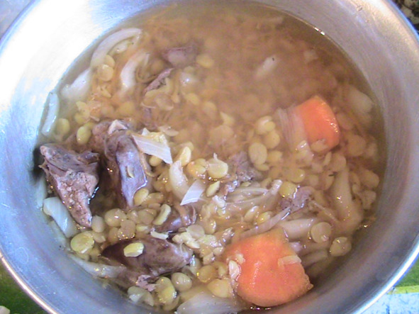 Вот ещё один мой супчик: гороховый с куриной печенью.