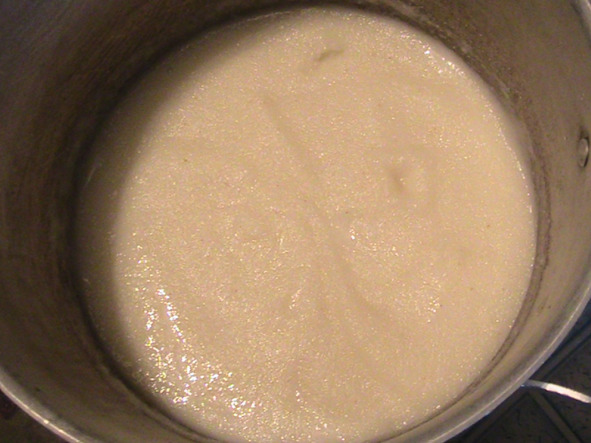 «Рецепт „МГНОВЕННОЙ“ манной каши. Влить 1,5 стакана молока 2,5% жирности. Затем влить 1 стакан холодной сырой воды. ставим на огонь. Всыпать 1 чайную ложку с горкой крупной соли. всыпать ещё 3 чайной ложки сахара…»
