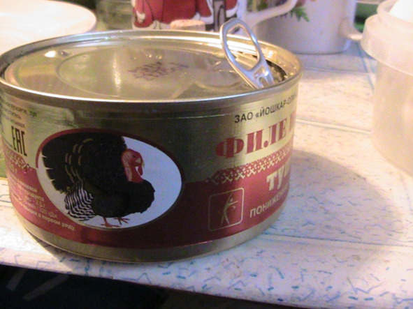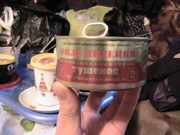 Моя мамка иногда делает и макароны и гречку: с тушёнкой «Столетовский мясной двор». Говядина тушёная. Первый сорт». И мне постоянно предлагает взять с собой и пачку макаронных перьев или рожков -взять с собой домой вместе с банкой-другой такой тушёнки. Да: хочется! Ноя-ДЕРЖУСЬ: останавливает ЖИР в ней: «…жир не более 17,0 г…» Это всего на 100 грамм то тушёнки!!! По-моему ПРЕДОСТАТОЧНО, чтобы..найти в себе силы-просто не есть и отказаться. Большая калорийность: «…калорийность не более 213 ккал…» И все эти «показатели» примерные! А то и вовсе: неправда! Как с рыбными консервами: рыба-одна, например сардина, а её калорийность – на разных банках разных производителей -КАЛОРИЙНОСТЬ РАЗНАЯ! Так и тут! Вот бы найти тушёнке… Замену! Достойную: убрав самое главное: жир и калорийность. Оставив сам ВКУС! Но..невозможно..казалось бы. Пытался заменить тушёнку на..«курицу в собственном соку». Не получилось: ЖИРУ-полно! Всё подряд же в эту банку «пихают» -жир, соевый (растительный который) белок. ШКУРКА (!!) …А в курице-ТОЛЬКО ГРУДКА-диетическое мясо.«ФИЛЕ КУРИНОЙ ГРУДКИ» – так и продают! Но вот отмечая Рождество, только С БОЖЬЕЙ ПОМОЩЬЮ, эта замена -нашлась: появилась «Тушёное ФИЛЕ ИНДЕЙКИ» Да ещё и… «ПОНИЖЕННАЯ КАЛОРИЙНОСТЬ»! Всего 75 ккал. -на 100 грамм продукта!