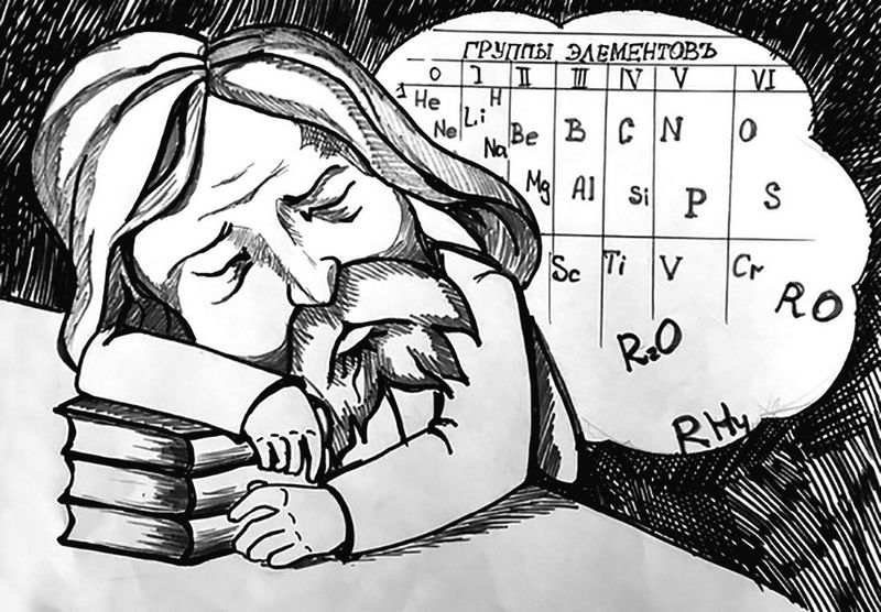 Размышляя над природой химических элементов, Менделеев к 1 марта 1869 года завершил первый вариант Периодической системы химических элементов, где элементы были расставлены по девятнадцати горизонтальным рядам. Вскоре появились первые публикации Таблицы Менделеева, работа над которыми продолжалась до конца жизни. Родился очередной миф, будто бы эти таблицы ему приснились и, пробудившись, он воспроизвел их на листе бумаги и тогда-то и понял, что создал Периодический закон. Отчасти в этой легенде виноват и сам ученый, которому наскучило отвечать на вопросы о своих научных открытиях, и он стал односложно отвечать, что увидел их во сне