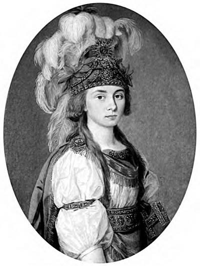 Неизвестный художник XVIII в. Портрет крепостной актрисы П. И. Ковалевой-Жемчуговой в костюме Элианы, героини оперы Гретри «Самнитские браки».