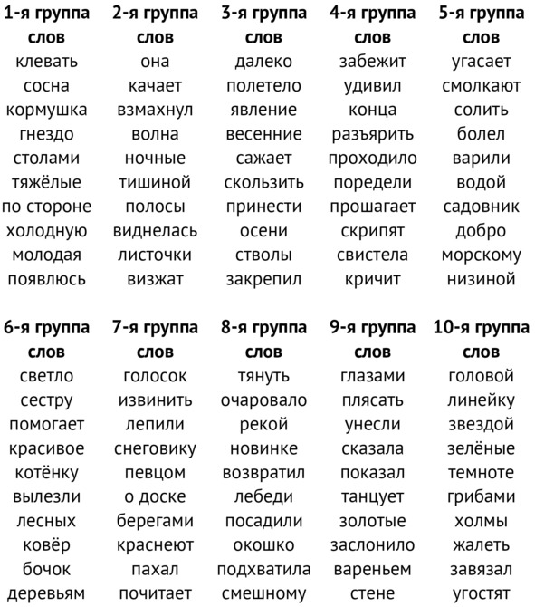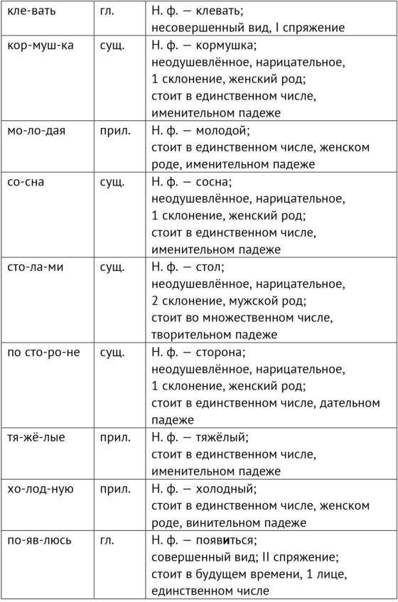 Гнезд-о, кл-ева-ть, корм-ушк-а, молод-ая, сосн-а, стол-ами, по сторон-е, тяж-ёл-ые, холод-н-ую, по-явл-ю-сь
