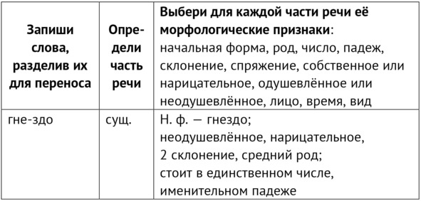 • Определи и запиши общие морфологические признаки слов первого столбика.
