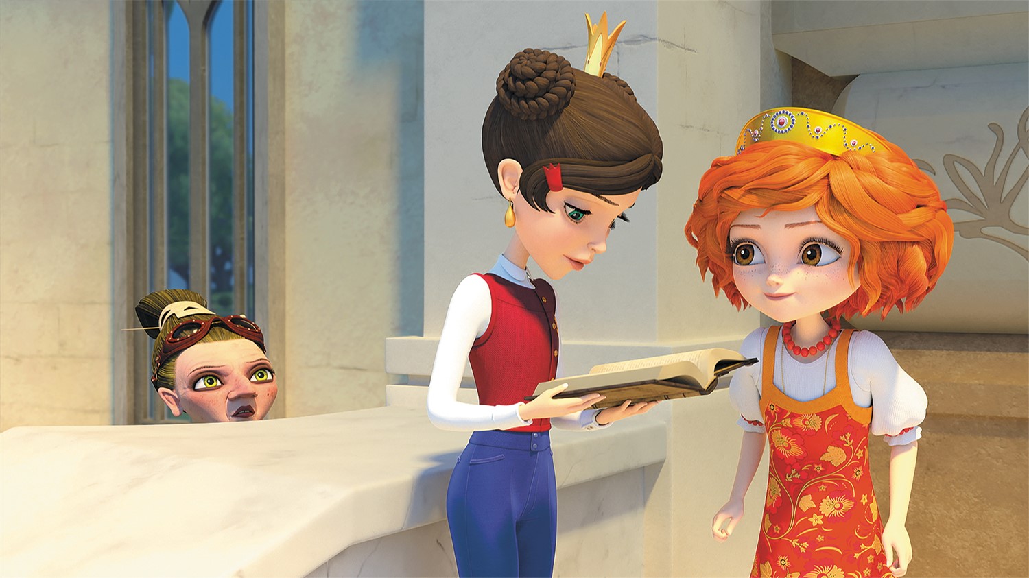 А в кабинете Кощей и Профессор беспокойно прохаживались из угла в угол. Не каждый день пропадают такие ценные книги. В этот миг из облаков вынырнула Дракониха с Дашей на спине. Через прутья царевна протянула директору фолиант: