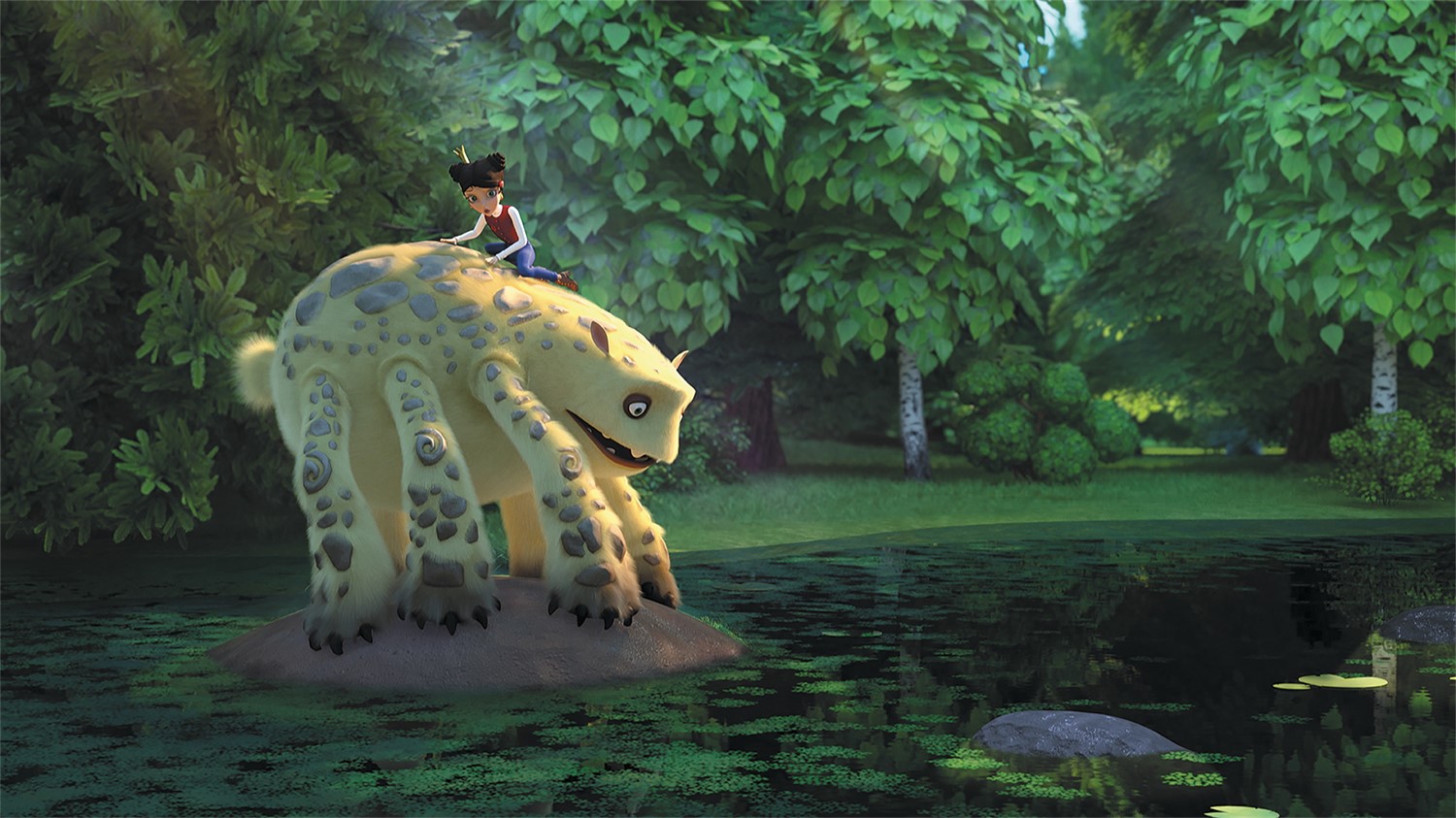 И управляемый отважной принцессой волшебный зверь выпрыгнул на сушу.