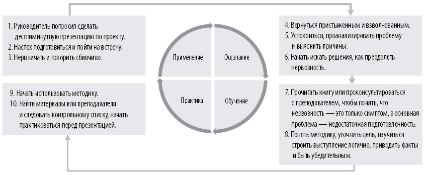 Мы надеемся, что эта книга поможет вам найти тренера по общению. Предположим, вы хотите освоить методику подготовки и проведения презентации. Мы как тренеры можем помочь вам практически во всех аспектах изучения, понимания, использования и практики. На рисунке ниже мы перечислили самые важные шаги на каждом этапе.