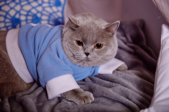 Итак, наша пышнотелая красавица с самой нежной на свете шерсткой никогда не наряжалась в костюмы, от слова совсем. И в итоге, купив достаточно просторное снегурочье платье, мама Катя водрузила его на кошечку. Первая же реакция Тоси – упасть и лежать на боку. Так что Снегурки из нее особой не вышло.