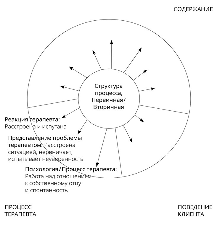 Этот термин, не имеющий точного аналога в русском языке, означает контроль или наблюдение за работой терапевтов (не обязательно начинающих), осуществляемый путем индивидуального или группового обсуждения ими своей работы с конкретными клиентами с более опытными учителями или наставниками – супервизорами (от supervision – букв. «присмотр», «надзор»). Это аналогично врачебным конференциям или обходам в больницах, на которых лечащие врачи или практикующие интерны рассказывают о своей работе с конкретными больными своим коллегам и главному врачу, с той лишь разницей, что case supervision в некотором смысле представляет собой своего рода сеанс «терапии терапевта»; поэтому применительно к психотерапии можно говорить о «сеансах case supervision». Эта практика берет свое начало из классического психоанализа, где каждый практикующий аналитик должен проходить собственный психоанализ, так как в процессе работы он не всегда может осознавать особенности отношений, складывающихся между ним и клиентом (перенос, контрперенос и т.п.). В дальнейшем я буду переводить case supervision как «разбор случаев», поскольку суть этой практики лучше всего передает русский эвфемизм «разбор полетов». Я намеренно не хочу использовать кальку «супервизия», чтобы лишний раз не засорять русский язык; кроме того, термин «разбор случаев» имеет более широкий смысл «разбора случаев из практики», применимый не только к психотерапевтам и врачам, но и к педагогам, ученым и т.д., и позволяет избежать употребления слова «случай» по отношению к людям. – Прим. пер.
