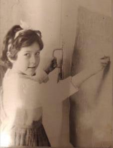 Жила-была одна девочка. Она мечтала стать учительницей. Звали её Алёнушка. Когда начинается наша сказка, было ей пять лет. И до того ей хотелось научить всех читать, что её любимый дедушка вырезал кусок линолеума и повесил его на дверь. И получилась школьная большая доска.