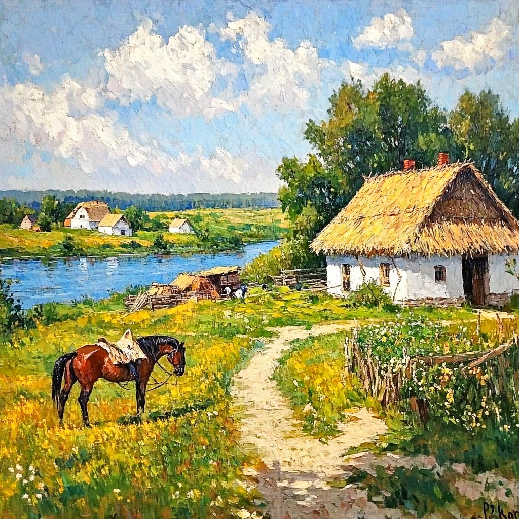 Находился он на пологом возвышении, внизу которого протекала неширокая река. По обоим её берегам, на довольно приличном расстоянии друг от друга, расположились очень похожие между собой глиняные хаты с камышовыми крышами. Пожалуй, единственное существенное различие у них заключалось лишь в размерах. Однако же сразу была заметна одна характерная особенность: на той стороне реки, где находился наш созерцатель, каждую хату, так же как и у него самого, окружали могучие деревья, отчего дворы напоминали оазисы среди пустыни, и совсем не было огородов, просто росла трава, утоптанная домашней скотиной. На противоположном же берегу, дело обстояло иначе. Деревья были поменьше, и видно что плодовые, для пользы. От хат к реке спускались огороды, на некоторых даже сейчас, несмотря на полуденный зной, копошились люди. И вообще, та сторона хоть отдалённо, но напоминала современную станицу. Видно было, что тамошние жители ведут хозяйство, что-то там делают, суетятся. Здесь же, всё было по-другому, будто на этой стороне находились помещичьи усадьбы, или домики для отдыха, хотя семья, в которую попал наш путешественник во времени, совсем не была похожа на барскую. Впрочем, как выяснилось позже, фруктовые сады были и здесь, просто находились они по другую сторону от жилищ и на расстоянии, чтобы не докучали насекомые, привлекаемые плодами деревьев.