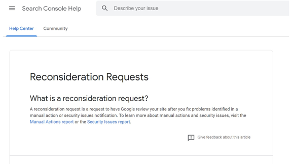 Перед тем, как подать запрос на пересмотр, вы должны исправить проблему, из-за которой ваш сайт был наказан.