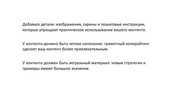 Добавьте детали: изображения, скрины и пошаговые инструкции, которые упрощают практическое использование вашего контента.