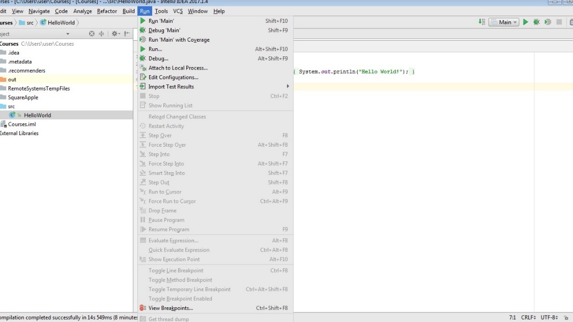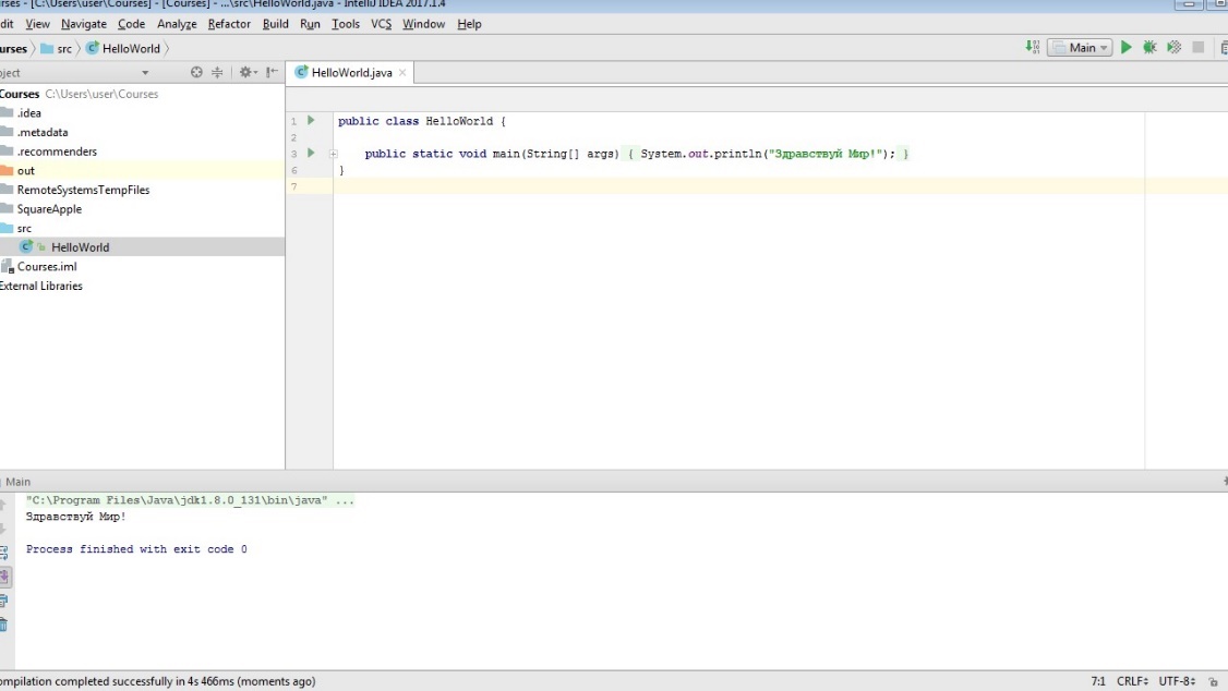 Поздравляем! Вы успешно написали свою первую программу Java.