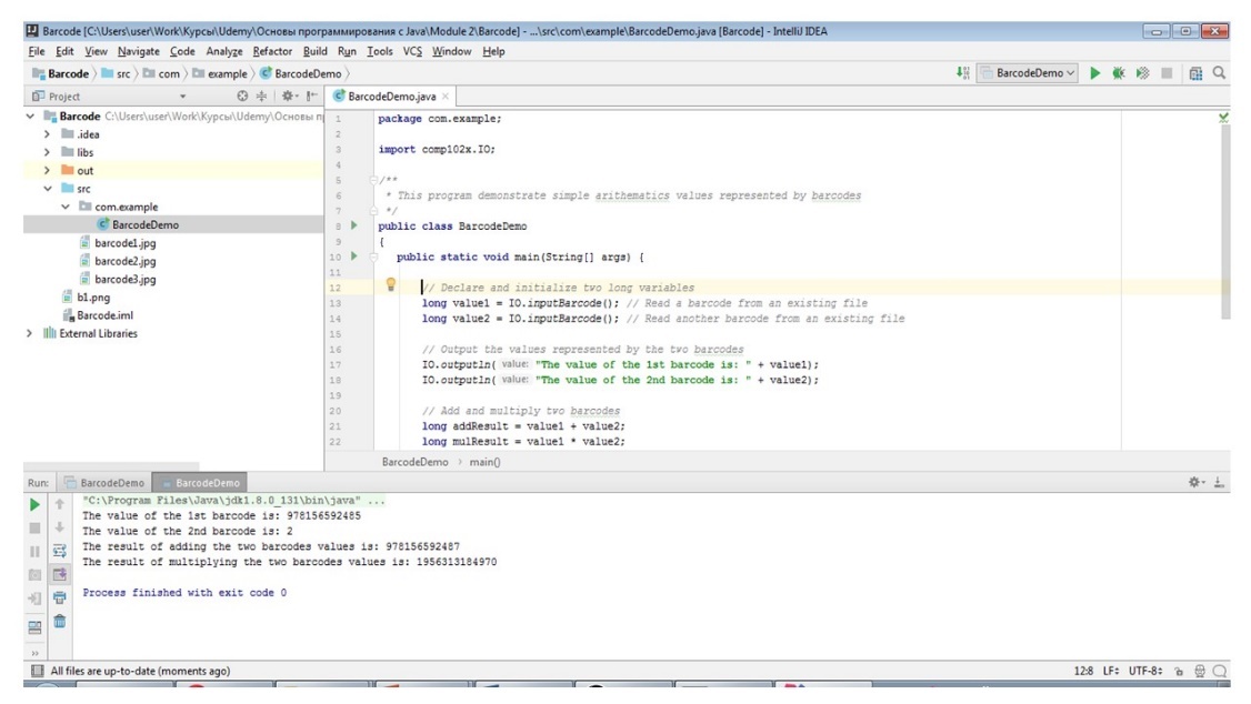 Как и прежде, программа получает имя класса, в данном случае BarcodeDemo, и метод main как главную точку входа в программу.