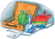 И Детский Доктор стал складывать лекарства в свой небольшой чемоданчик. Чемоданчик был среднего возраста, не новый и не старый, жёлтого цвета, с блестящими замками.