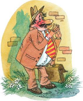 Управдом сидел на скамейке, смотрел на ребят и о чём-то думал. У него было красное лицо и красная шея. Посреди красного лица торчал не очень красивый нос, похожий на большую грушу.