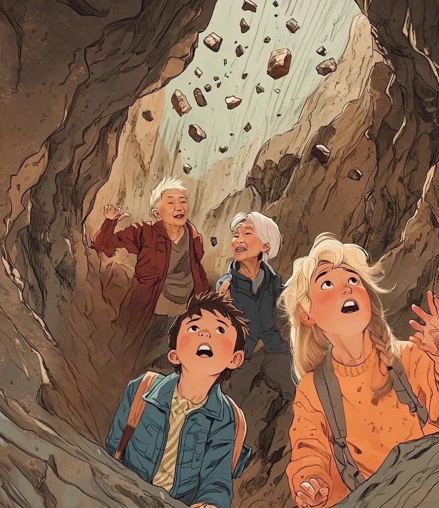 В пещере было очень сыро и холодно. Лиля, Алан, Вейж и Мин сидели около насыпи, удрученно крутя фонарики в руках.