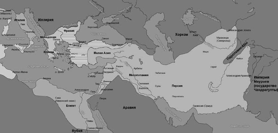 Fig. 18. Division of Alexander's empire after the battle of Ips (301 B.C.) The Lysimachus empire is dashed.