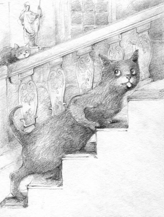 Тихон же, став подростком, начал усиленно заниматься охранным делом… Он бегал, прыгал, преодолевал препятствия. Учился бесшумно проникать в залы, тенью обходить территорию. Вечером доползал до своей комнаты и падал на подстилку, едва шевеля лапами от усталости. Из-за тренировок ему пришлось пропускать занятия по истории искусств.
