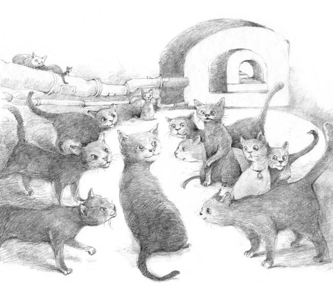 Тихон вышел в светящийся круг, который отбрасывала тусклая лампочка. И его тут же обступили коты. Их было много, очень много. Они были чёрные, грязные и смотрели настороженно.