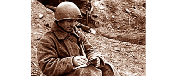 Над землянкой теснойМартовское небо.Солнце нижет воздухЗолотой тесьмой.На моих коленях,С котелком и хлебом,Из дому от мамыТеплое письмо.Пишет мне из дома,Задает вопросы:«Как ты там, сыночек?Как на фронте жизнь?»А меж тесных строчек,Вижу – капли… слезы…Темными кружочкамиВсюду разошлись.Как ее утешить?Что ответить маме,Чтоб не застилалиБольше слезы свет?По привычке старойЭтими стихамиНа листе блокнотаЯ пишу ответ.