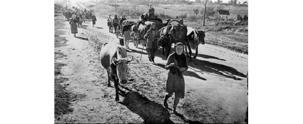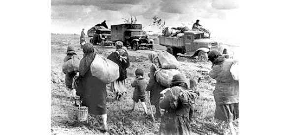 Он шел за всеми, сколько мог,Превозмогая ног усталость.Но не хватило сил у ног,Их отняла седая старость. Года, уже не те года, У жизни есть свои законы… И он тоскливо наблюдал, Как уходил конец колонны.Но к вечеру он всех нагналИ с нами под одною крышейОстановился на привал.И лет семнадцати парнишка, Спросил его: – Послушай, дед, Зачем ты тянешься за нами? Тот только посмотрел в ответ. Вконец усталыми глазами.Мы в них прочли без лишних фраз:– Беда у общего порога!У старика, как и у нас,Одна судьба, одна тревога. А утром тот же паренек, Хотя и знал, что путь был труден, Заплечный взял его мешок, Сказав: – Иди, так легче будет.6. ВДОВА