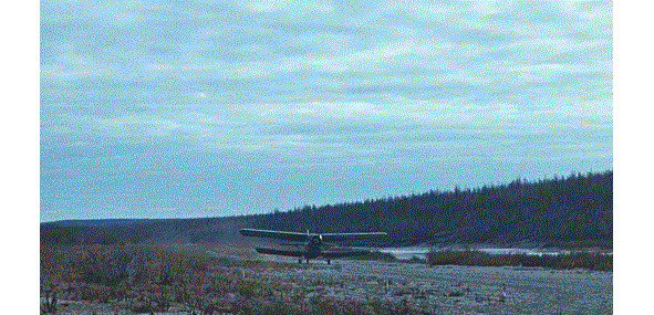 Самолет прилетел утром и сел прямо на косу. Пилот вылез и, подняв летные очки, пошел осматривать «взлетную полосу». Он долго ходил, отшвыривая ногой какие-то незначительные камушки и весь вид его как бы говорил: – «Сесть-то мы сели, а вот как взлетать будем»?